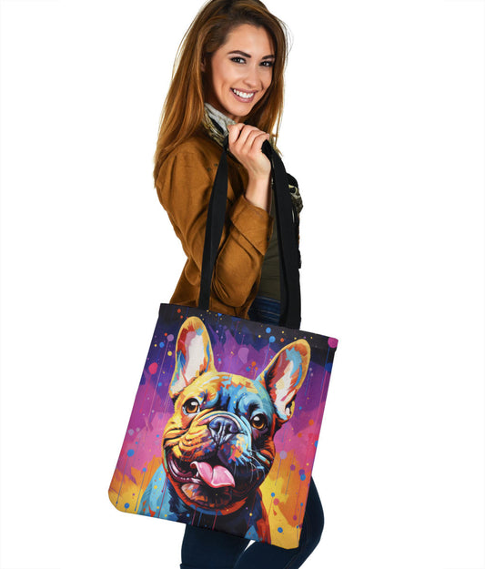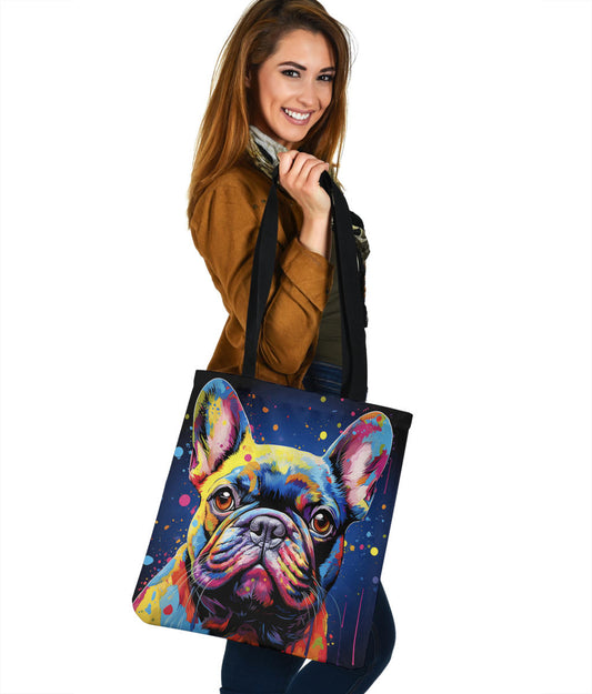 French Bulldog Tote Bag Featuring Art in a Neo-Pop Art Style