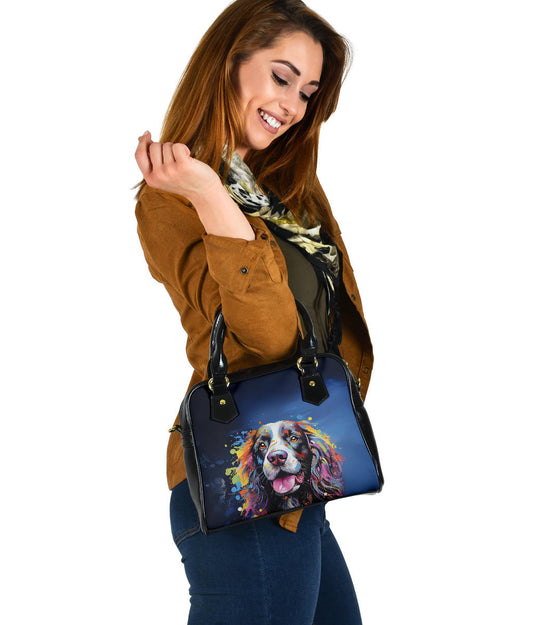 English Springer Spaniel Shoulder Handbag Featuring Art in a Neo-Pop Art Style