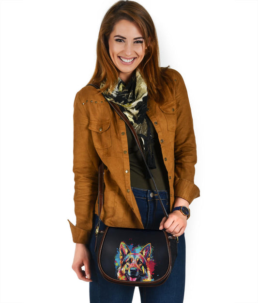 German Shepherd Canvas Saddle Bag Featuring Art in a Neo-Pop Art Style