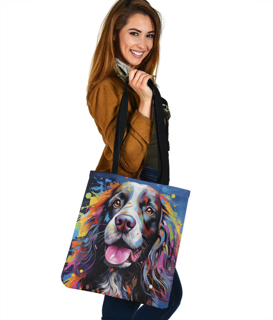 English Springer Spaniel Tote Bag Featuring Art in a Neo-Pop Art Style