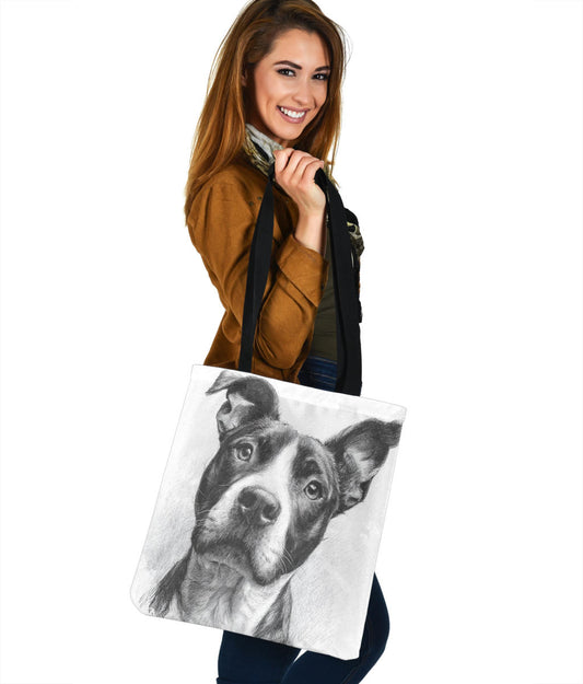 Pit Bull 1 Pencil Sketch Artwork Tote Bags