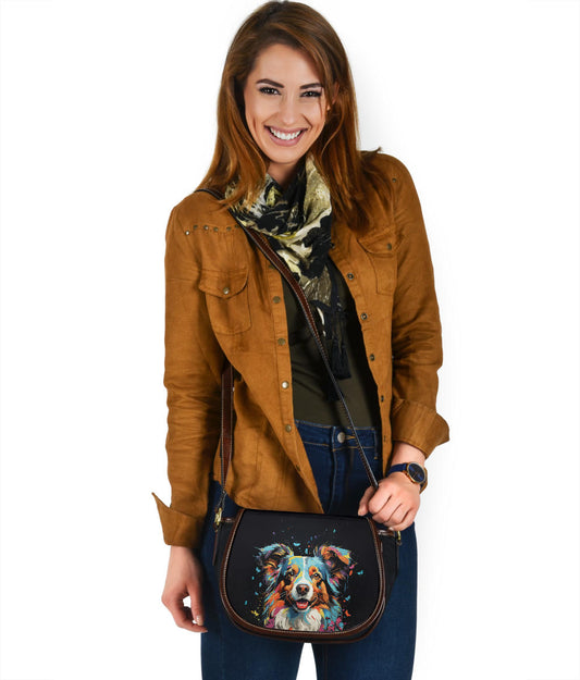 Papillon Canvas Saddle Bag Featuring Art in a Neo-Pop Art Style