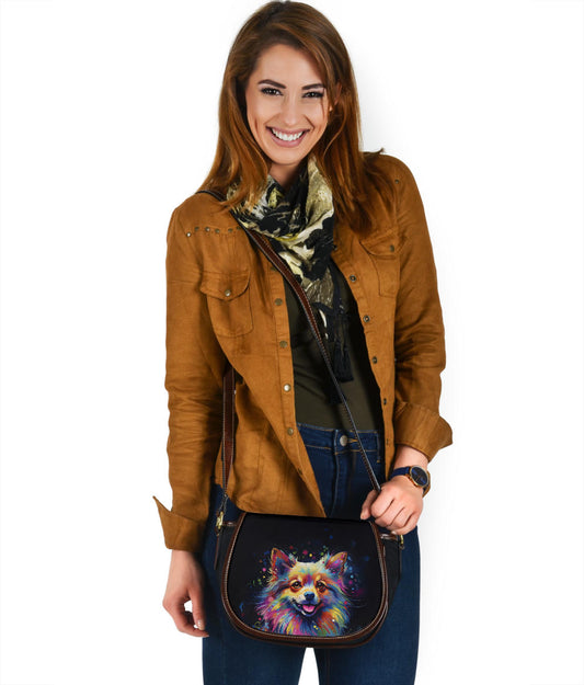 Pomeranian Canvas Saddle Bag Featuring Art in a Neo-Pop Art Style