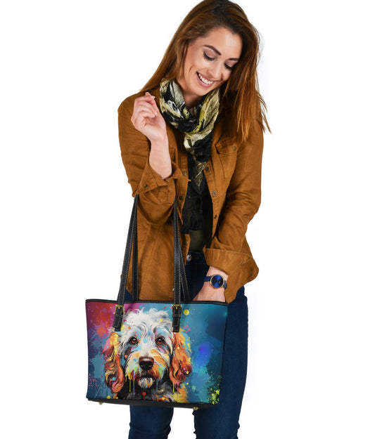 Poodle Small Faux Leather Tote Featuring Art in a Neo-Pop Art Style