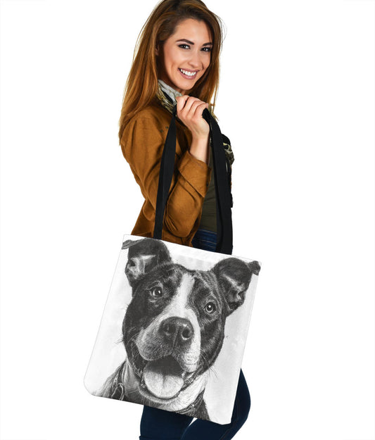 Pit Bull 1 Pencil Sketch Artwork Tote Bags