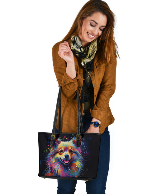 Pomeranian Small Faux Leather Tote Featuring Art in a Neo-Pop Art Style