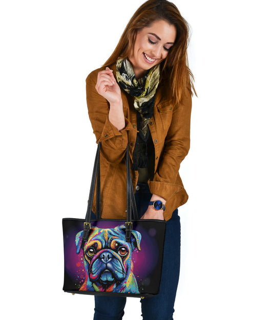 Pug Small Faux Leather Tote Featuring Art in a Neo-Pop Art Style