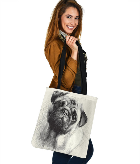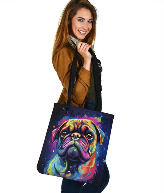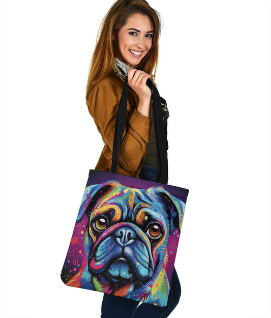 Pug Tote Bag Featuring Art in a Neo-Pop Art Style