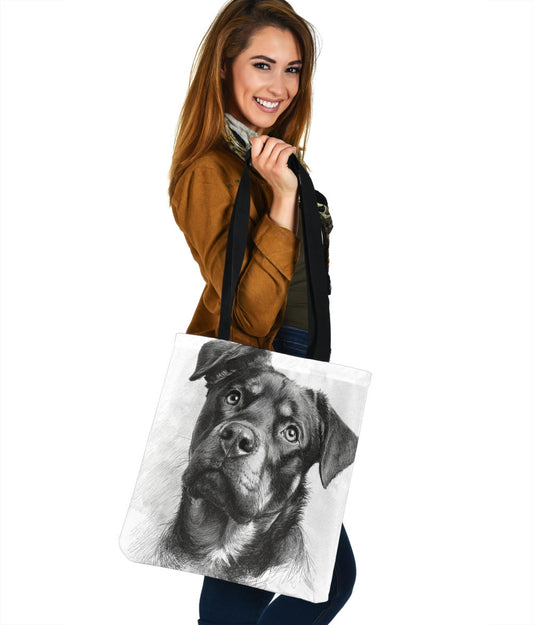 Rottweiler Pencil Sketch Artwork Tote Bags