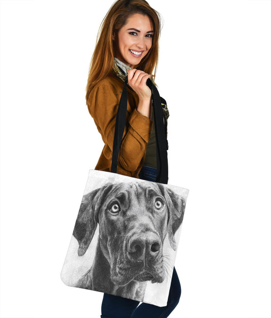 Rhodesian Ridgeback Pencil Sketch Artwork Tote Bags