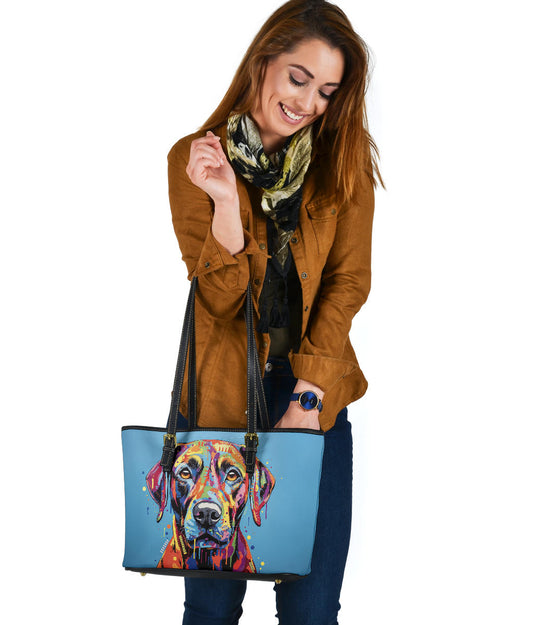 Rhodesian Ridgeback Small Faux Leather Tote Featuring Art in a Neo-Pop Art Style