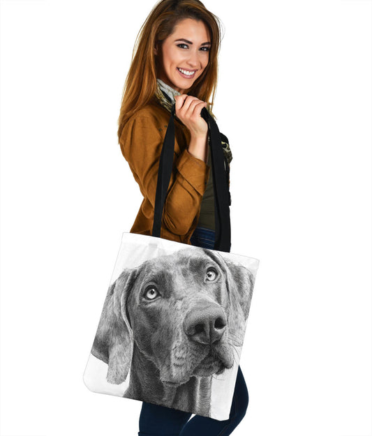 Weimaraner Pencil Sketch Artwork Tote Bags