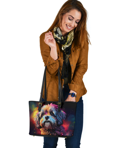 Shih Tzu Small Faux Leather Tote Featuring Art in a Neo-Pop Art Style