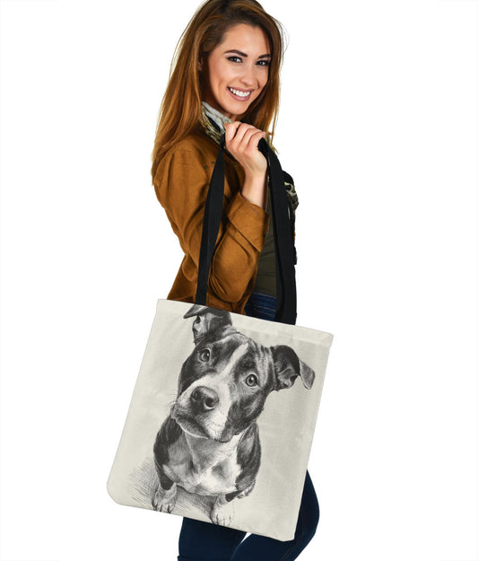 Staffordshire Terrier (Staffie) Pencil Sketch Artwork Tote Bags