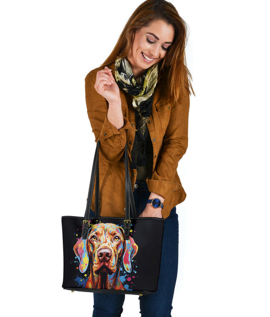 Weimaraner Small Faux Leather Tote Featuring Art in a Neo-Pop Art Style