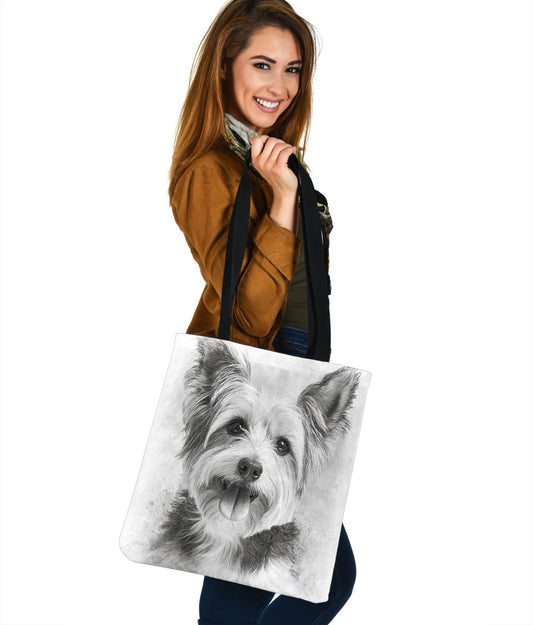 Yorkshire Terrier (Yorkie) Pencil Sketch Artwork Tote Bags