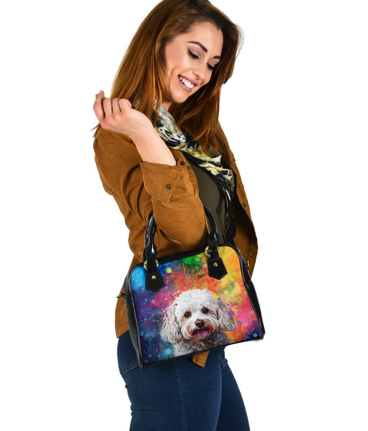 Bichon Frise Shoulder Handbag Featuring Art in a Neo-Pop Art Style