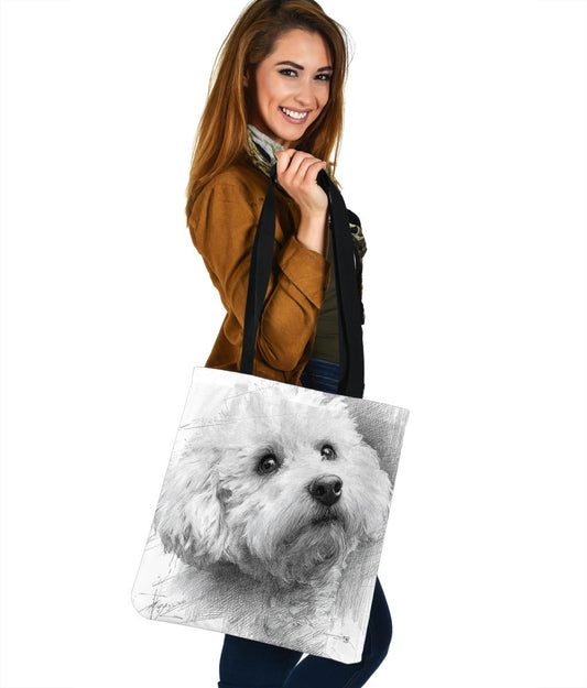 Bichon Frise Pencil Sketch Artwork Tote Bags