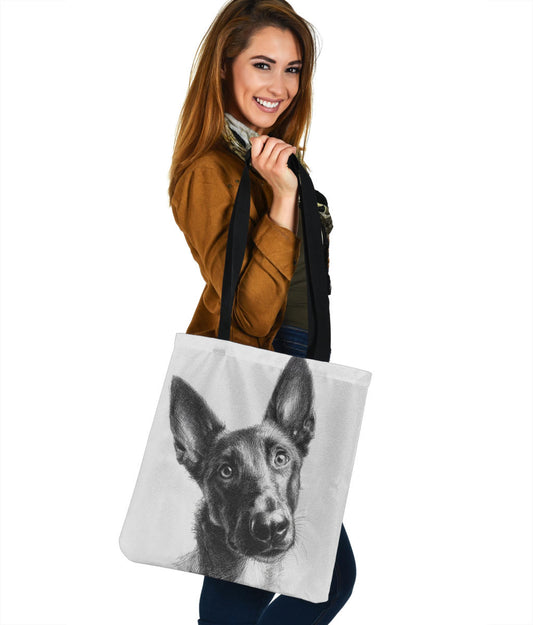 Belgian Malinois Pencil Sketch Artwork Tote Bags