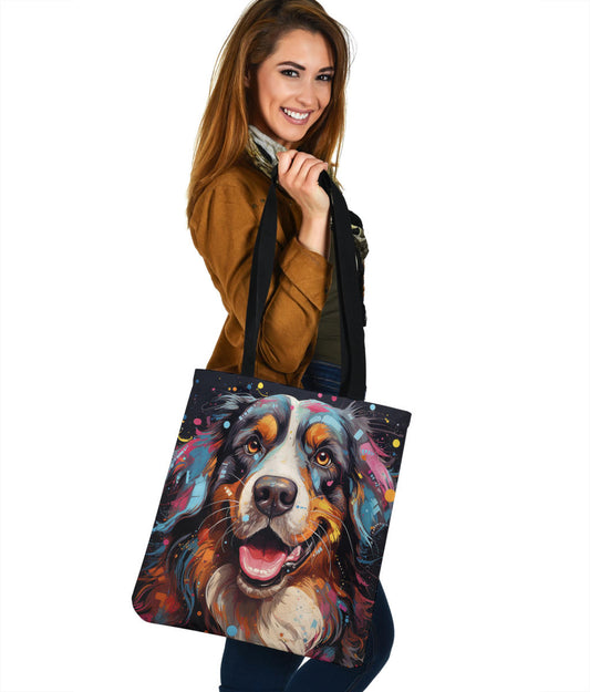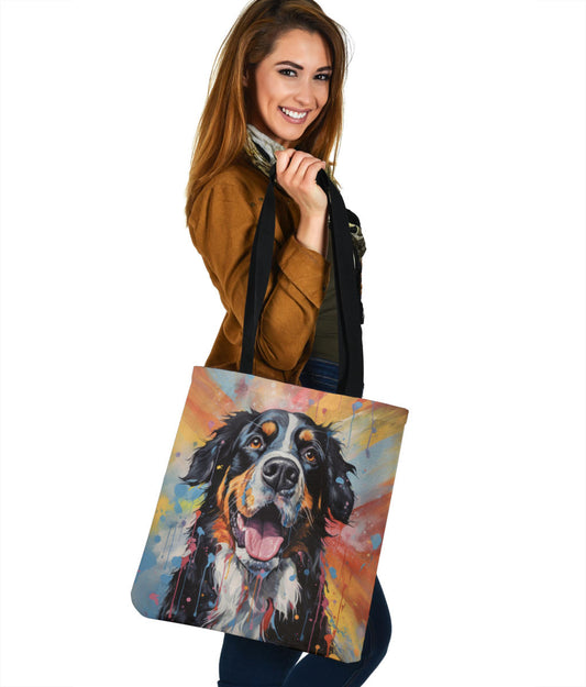 Bernese Mountain Dog Tote Bag Featuring Art in a Neo-Pop Art Style