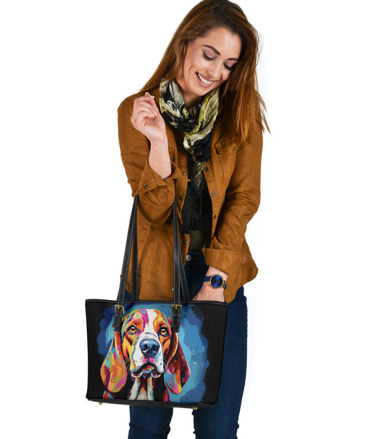 Beagle Small Faux Leather Tote Featuring Art in a Neo-Pop Art Style