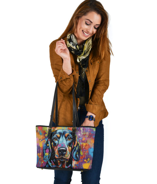 Dachshund Small Faux Leather Tote Featuring Art in a Neo-Pop Art Style