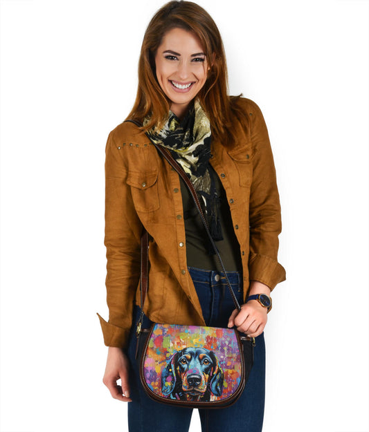 Dachshund Canvas Saddle Bag Featuring Art in a Neo-Pop Art Style