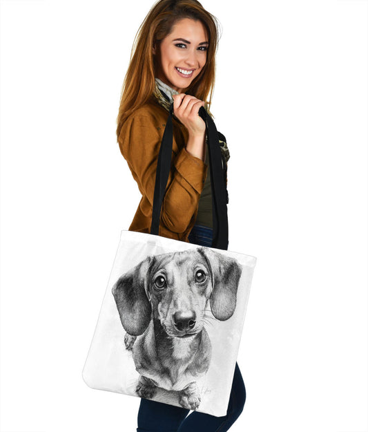 Dachshund (Doxie) Pencil Sketch Artwork Tote Bags