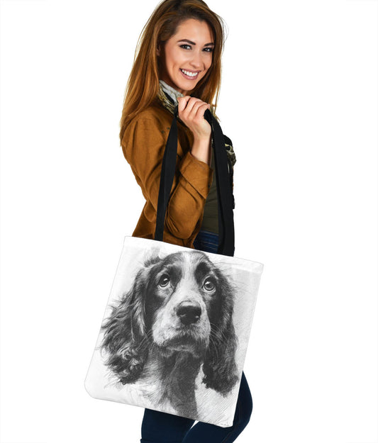 Cocker Spaniel Pencil Sketch Artwork Tote Bags