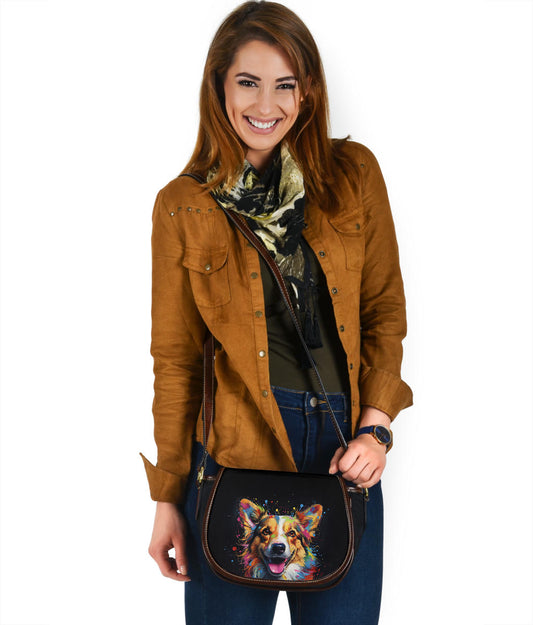 Corgi Canvas Saddle Bag Featuring Art in a Neo-Pop Art Style