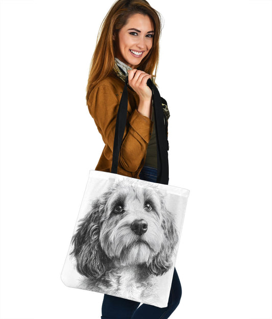 Cockapoo Pencil Sketch Artwork Tote Bags