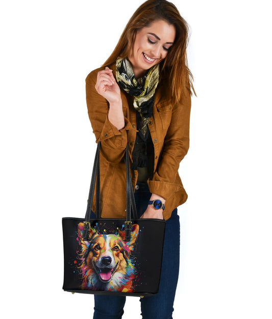 Corgi Small Faux Leather Tote Featuring Art in a Neo-Pop Art Style
