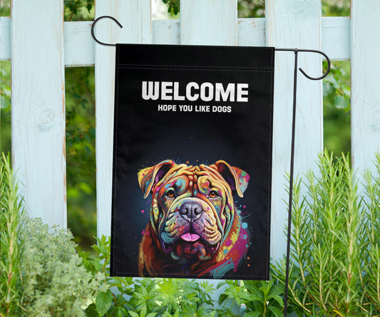 Shar Pei Garden and House Flags Featuring Art in a Neo-Pop Art Style