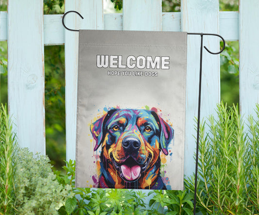 Rottweiler Garden and House Flags Featuring Art in a Neo-Pop Art Style