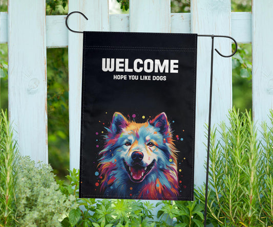 Samoyed Garden and House Flags Featuring Art in a Neo-Pop Art Style