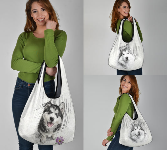 Alaskan Malamute Pencil Sketch Artwork Grocery Bags (3pcs)