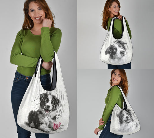 Australian Shepherd Pencil Sketch Artwork Grocery Bags (3pcs)
