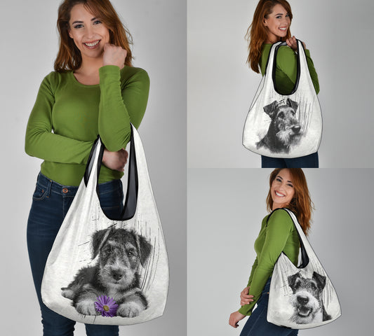 Airedale Terrier Pencil Sketch Artwork Grocery Bags (3pcs)