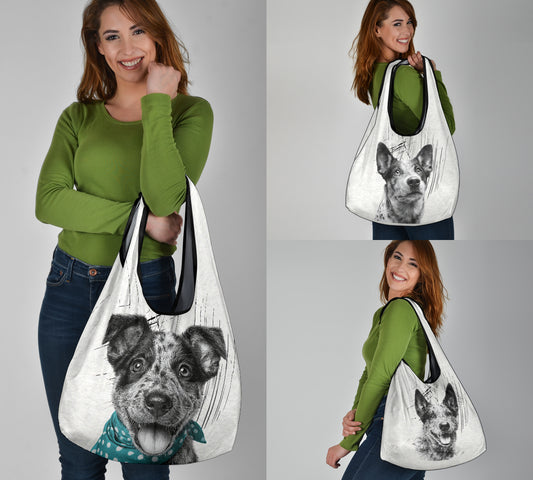 Australian Cattle Dog | Blue Heeler Pencil Sketch Artwork Grocery Bags (3pcs)