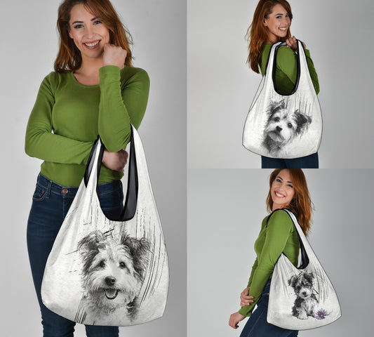 Yorkshire Terrier (Yorkie) Pencil Sketch Artwork Grocery Bags (3pcs)