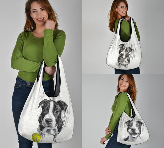 Staffordshire Terrier (Staffie) Pencil Sketch Artwork Grocery Bags (3pcs)