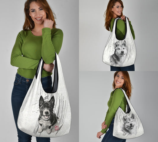 Shiba Inu Pencil Sketch Artwork Grocery Bags (3pcs)