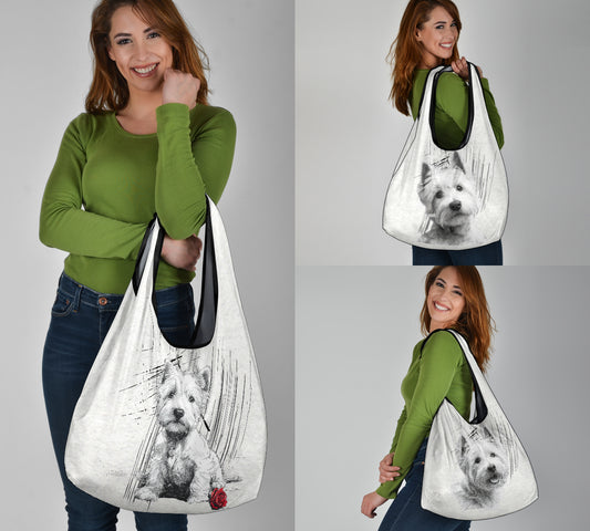 West Highland White Terrier (Westie) Pencil Sketch Artwork Grocery Bags (3pcs)