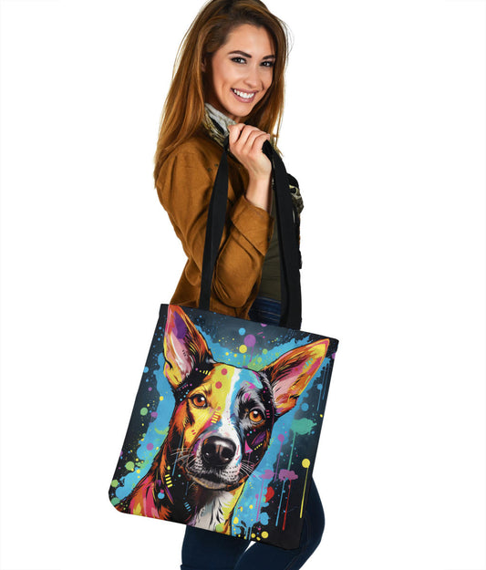 Basenji Tote Bag Featuring Art in a Neo-Pop Art Style