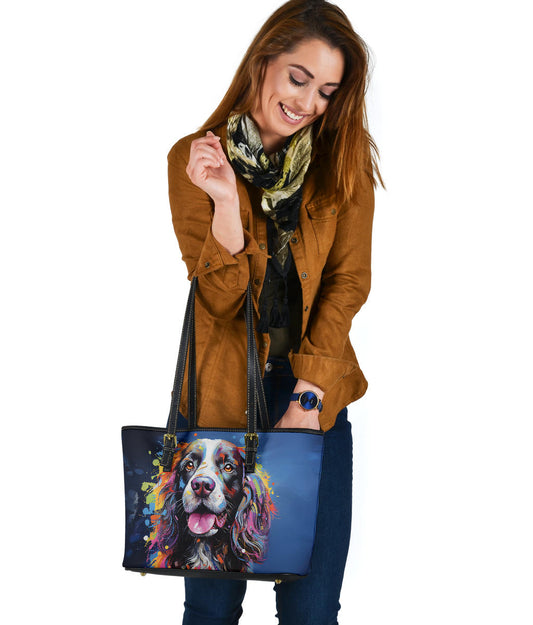 English Springer Spaniel Small Faux Leather Tote Featuring Art in a Neo-Pop Art Style