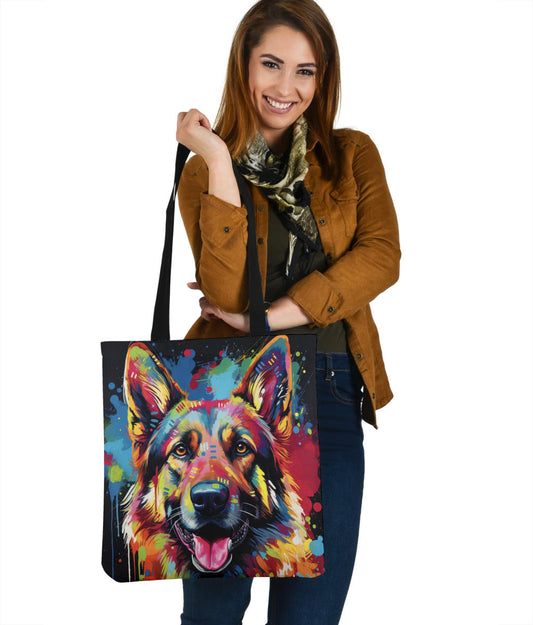 German Shepherd Tote Bag Featuring Art in a Neo-Pop Art Style