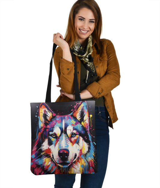 Husky Tote Bag Featuring Art in a Neo-Pop Art Style