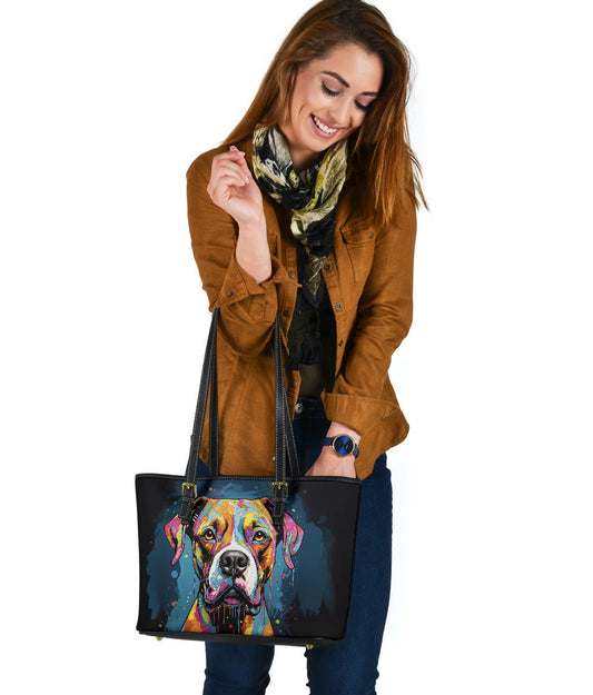 Bull Mastiff Small Faux Leather Tote Featuring Art in a Neo-Pop Art Style