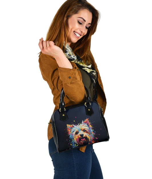 Yorkshire Terrier (Yorkie) Shoulder Handbag Featuring Art in a Neo-Pop Art Style