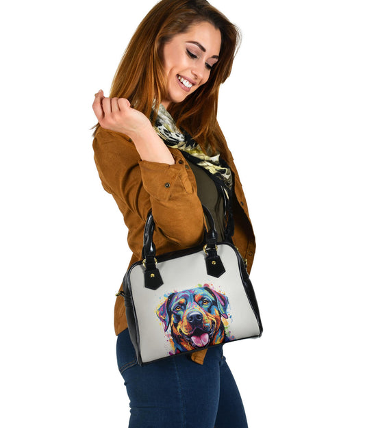 Rottweiler Shoulder Handbag Featuring Art in a Neo-Pop Art Style